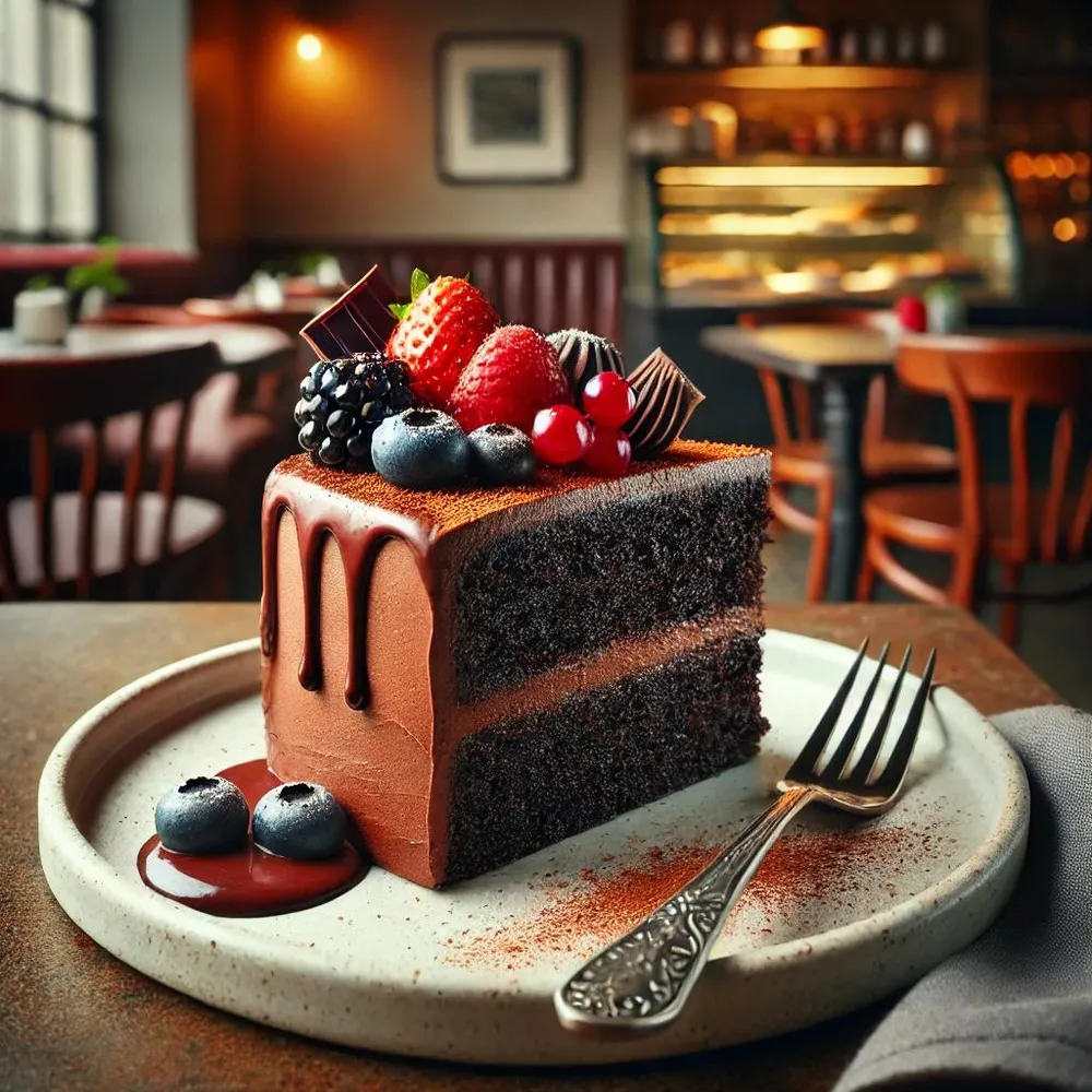 Vegan Chocolate cake made with Banana Flour and covered with our Peanut Butter Chocolate Glaze and sprinkled with Toasted Coconut