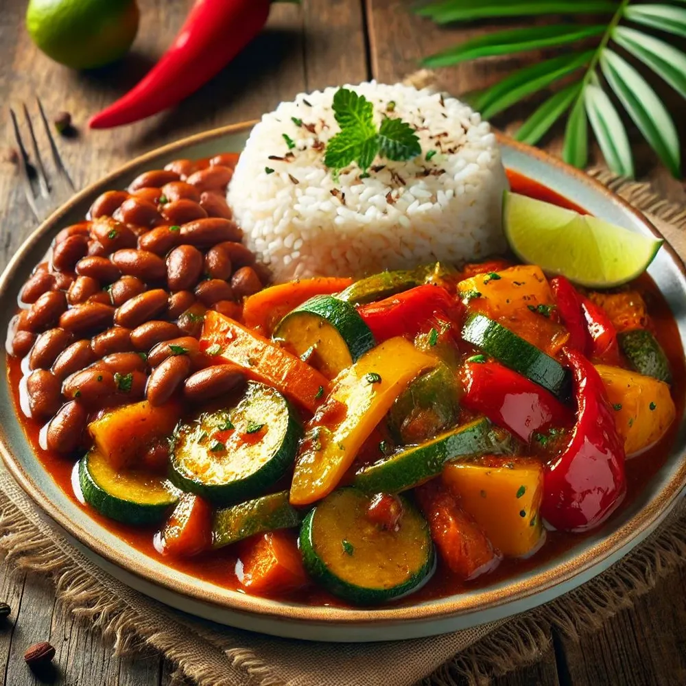 Mixed veggies in Caribbean sauce come with rice & beans