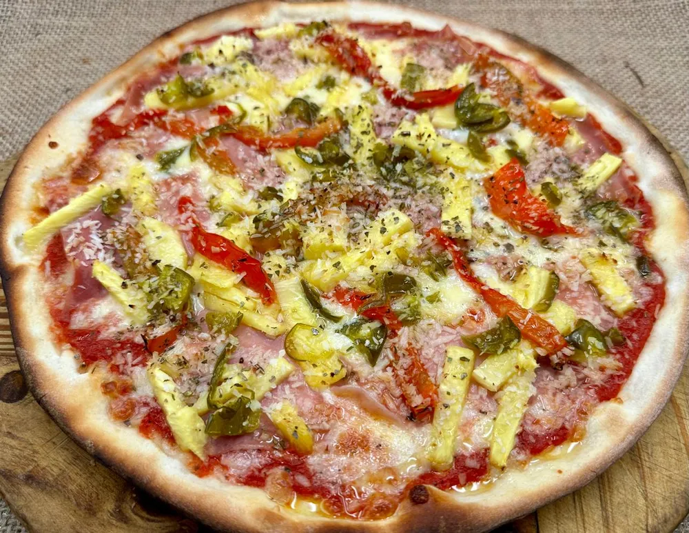 Tomato, Mozzarella, Ham, Red Pepper, Pinapple, Jalapeños and Coconut